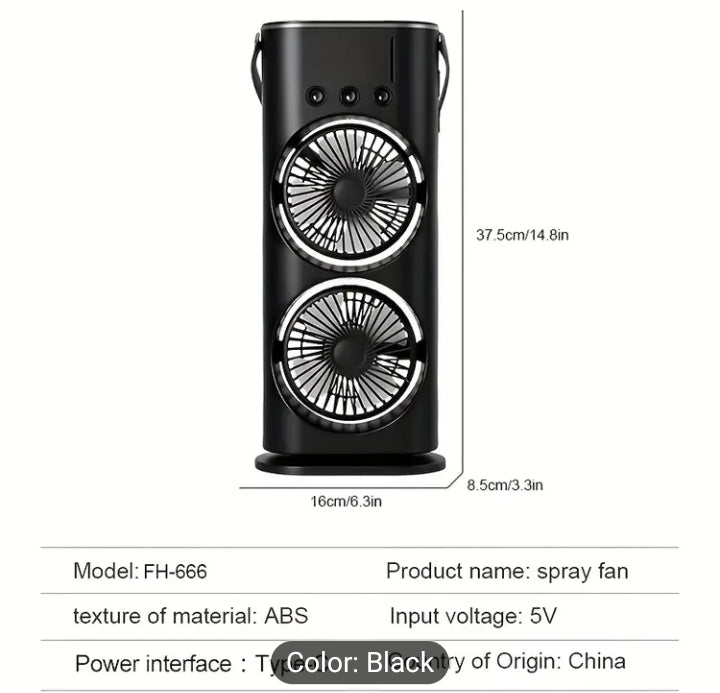 Dual-Head Spray Fan USB Cooler Humidifier with LED Colorful Lights, 180° Adjustable Angle, 3 Speed Settings, Ideal for Office and Desk Use, Desktop Fan
