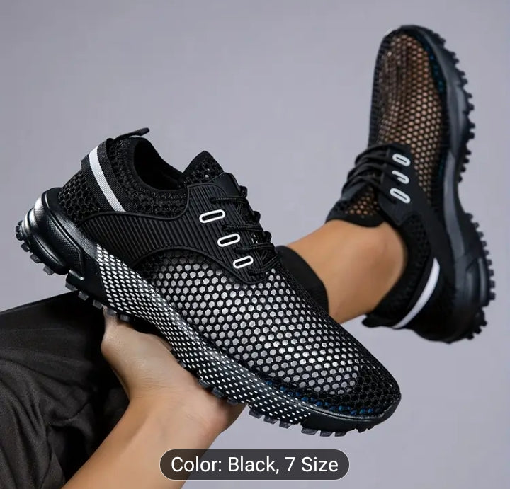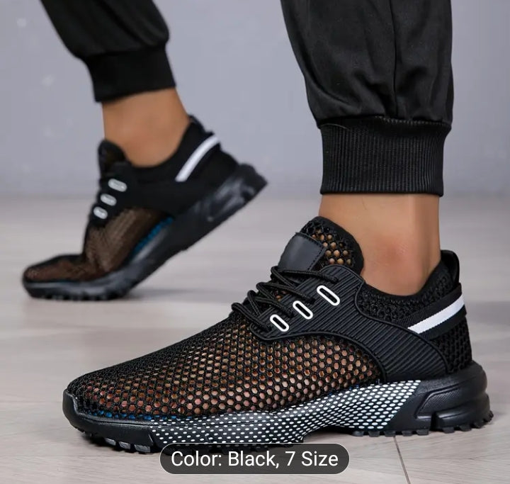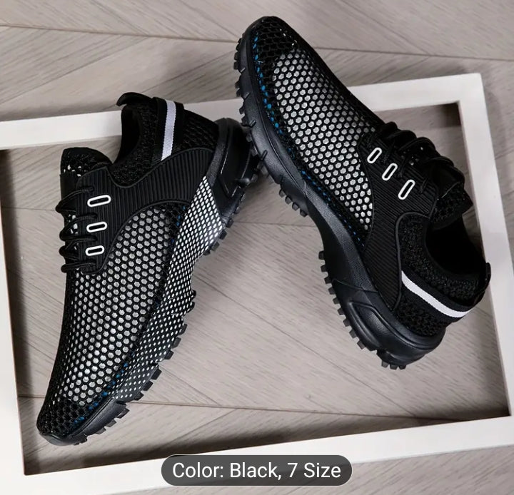 Men's Breathable Summer Casual Sneakers -Lightweight Low-Top Lace-Up Shoes with PU/Fabric Upper & EVA Cushioned Sole for Gym, Walking, Daily Wear - Black, Gym Shoes, Sleek Athletic Design